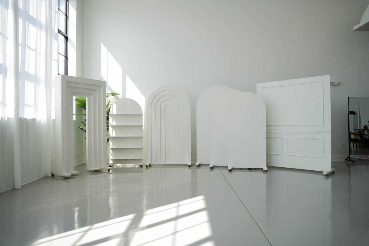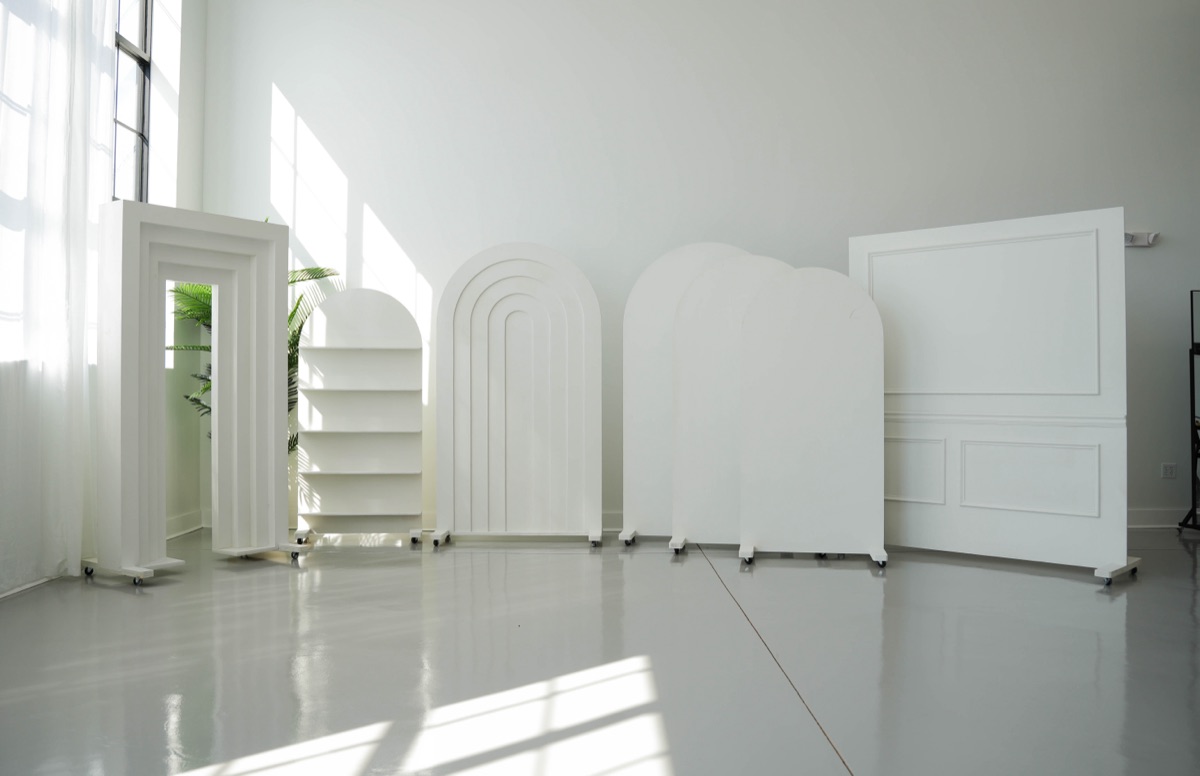 Moveable walls to create separate areas, backdrops, or room divisions. Perfect for multi-setup shoots or creating distinct zones during events.